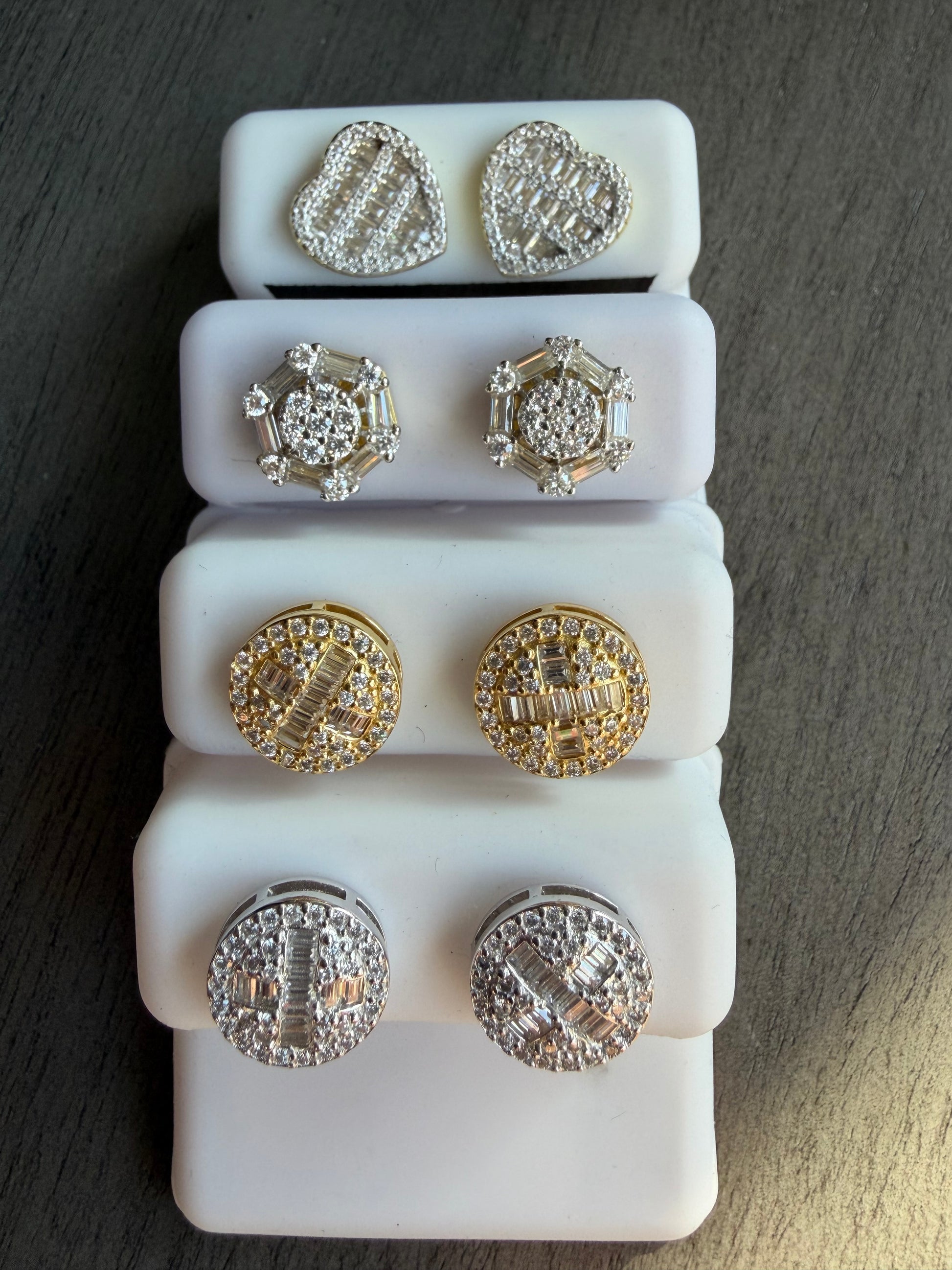 1.14 baguette silver & Moissanite screw backs