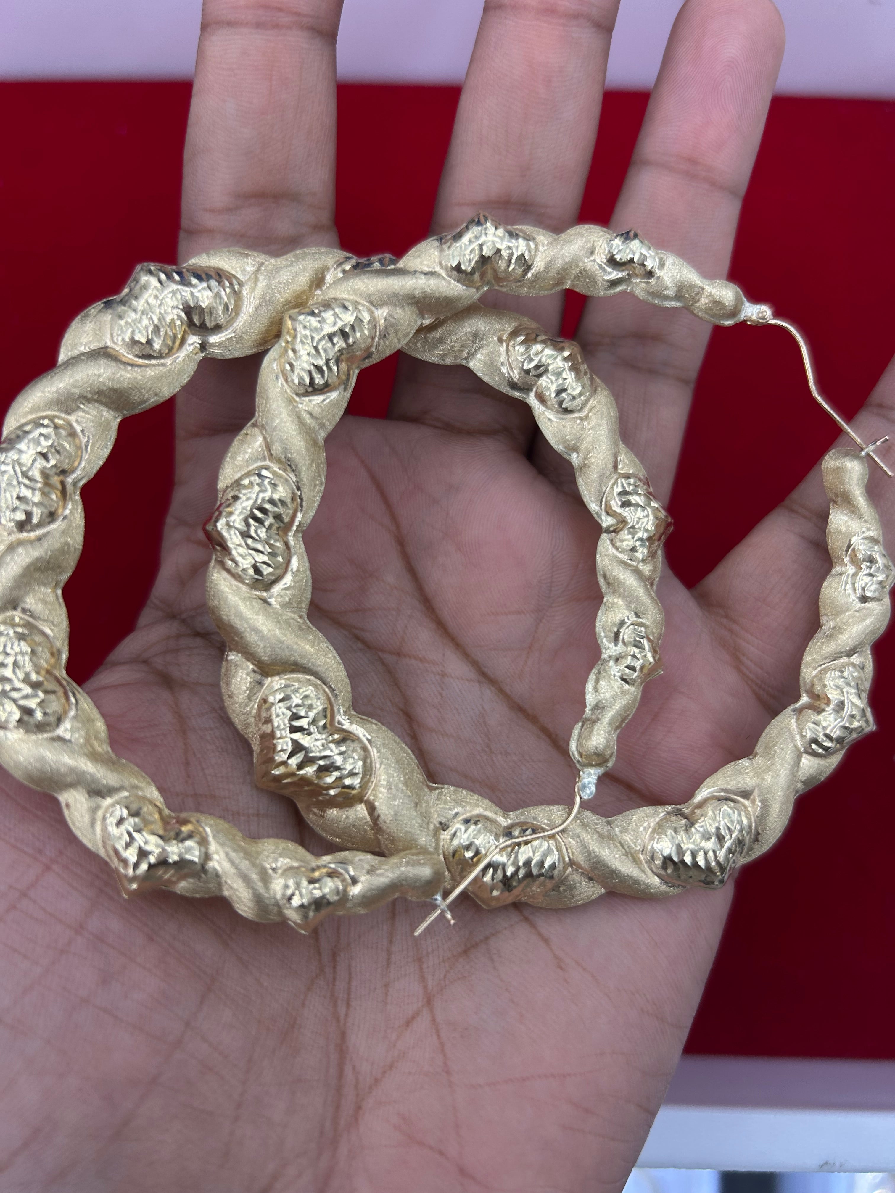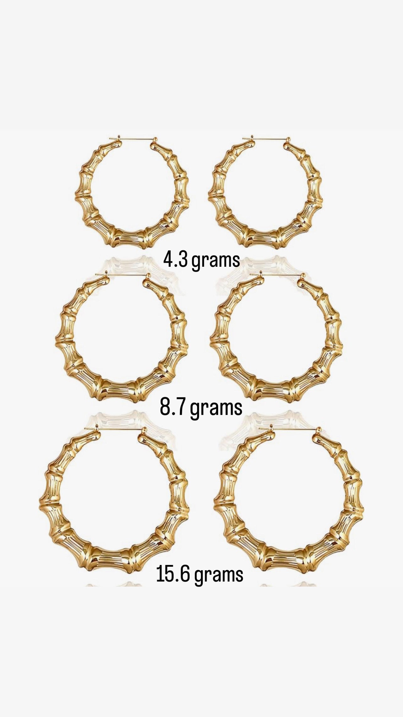10k gold hoops, not gold plated or gold filled, the size I’m holding is 15.6 grams.